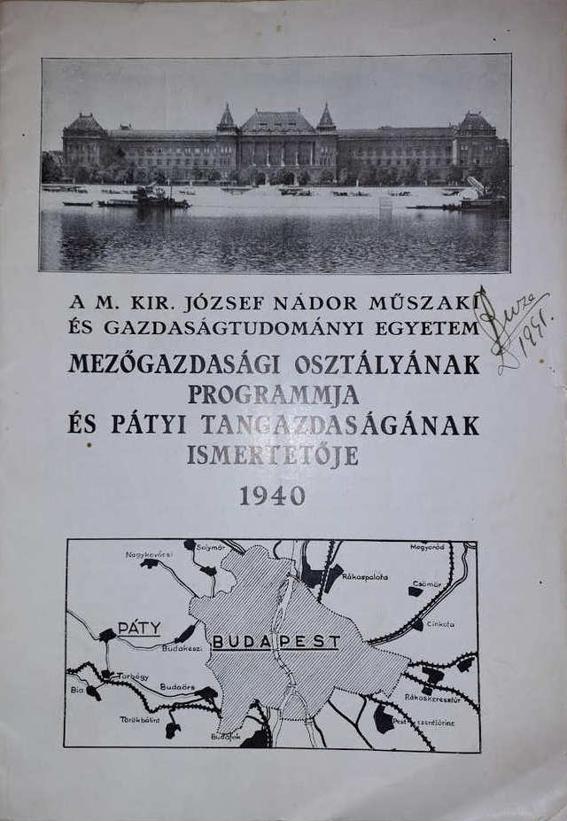A M. Kir. József Nádor Műszaki és Gazdaságtudományi Egyetem Mezőgazdasági Osztályának programmja és Pátyi Tangazdaságának ismertetője