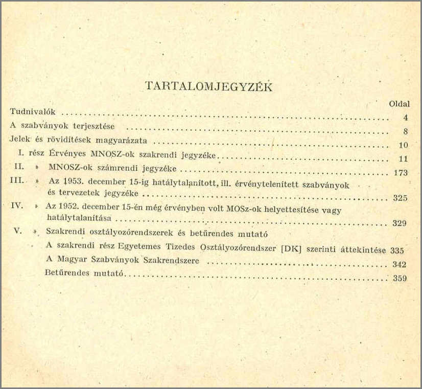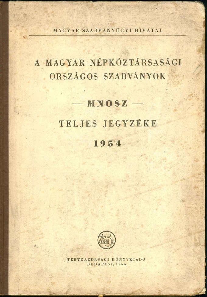 A Magyar Népköztársasági Országos Szabványok - MNOSZ - teljes jegyzéke, 1954