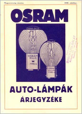 Árjegyzék - Osram auto-lámpák 1936. okt