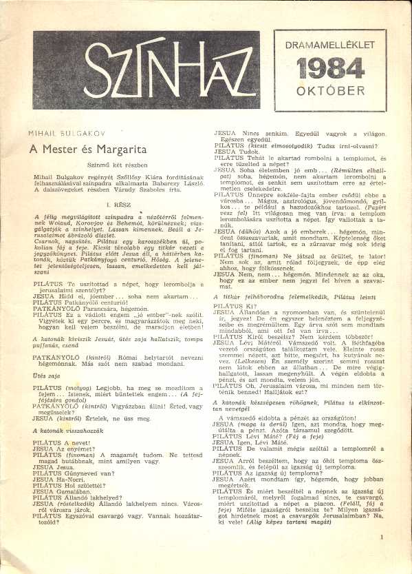 Szereplők: Spindler Béla, Jordán Tamás, Igó Éva, Garas Dezső,Helyy László, Lukáts Andor, Bezerédy Zoltán, Kristóf Kata, Koltai Róbert, Máté Gábor, Csákányi Eszter, Lázár Kati, Kari Györgyi stb.