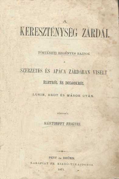 Előszó A vallásos testületekről, két különböző könyvet lehetne irni. Bizonyos szerzetek munkássága, erénye, áhitatossága tanulságos történetet képez; bizonyos zárdák lomhasága, bujasága, kicsapongásai, iszonyu történetet mutatnak. A vallásos iratok, kik a monostorok titkos életét kikutatták, nekünk csak látványát adják a keresztényi hódolatnak; a szabad szellemek ellenben, kik szintén kutatták a szerzetes világot, csak a botlások és emberi gyöngeségek látványát nyujtják. Amazok csak elejét irták meg a történeti műnek, ezek pedig nagy történet végét beszélik el nekünk