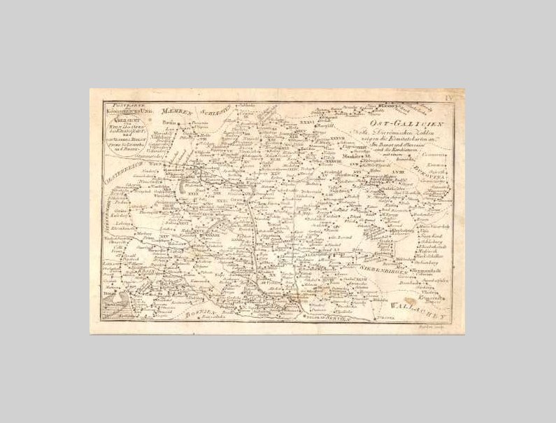 régi magyar térkép - Korabinszky: A Magyar Királyság / Postkarte Königreichs Ungarn. Rézmetszet. Fekete-arany keretben.