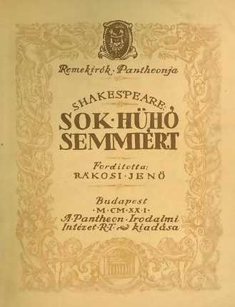 Shakespeare: Sok hűhó semmiért Vígjáték 5 felvonásban. Ford. Rákosi Jenő