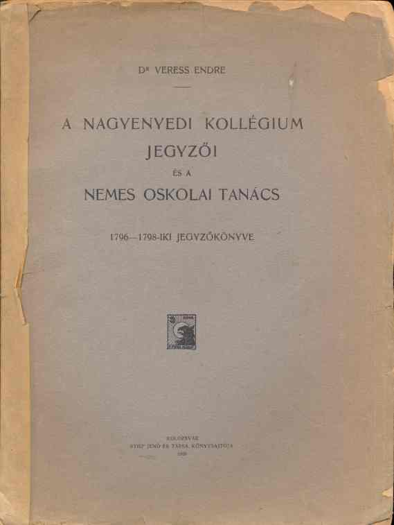 Veress Endre: A nagyenyedi kollégium jegyzői és Nemes Oskolai Tanács 1796-1798-iki jegyzőkönyve