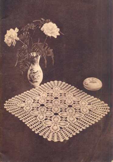 Régi újság kívágás: Terítő nagyobb asztalra, leírással és kész horgolt csipkével.