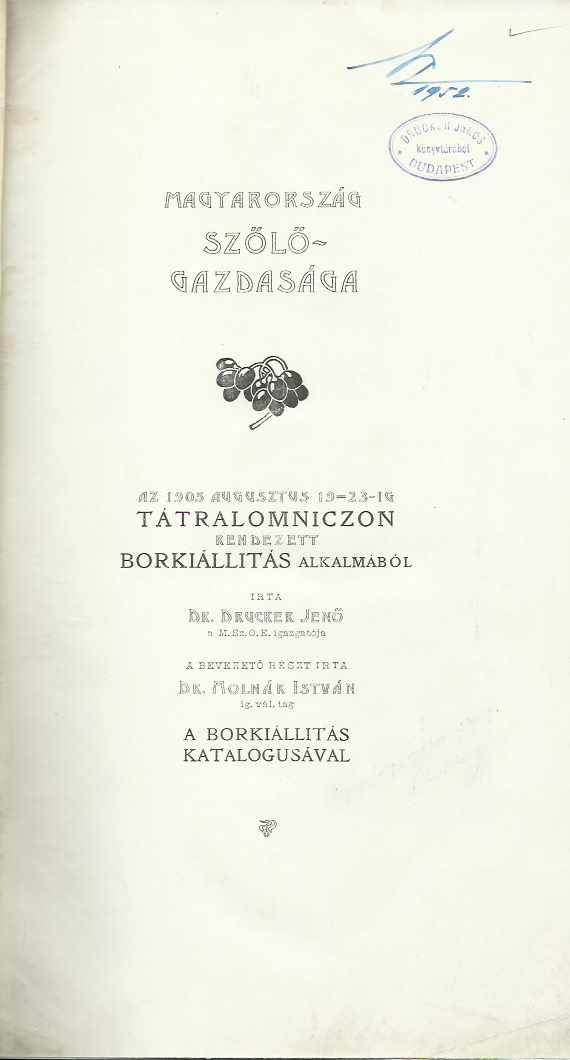 Dr. Drucker Jenő: Magyarország szőlőgazdasága az 1905. augusztus 19–23-ig Tátralomniczon rendezett borkiállítás alkalmából írta --