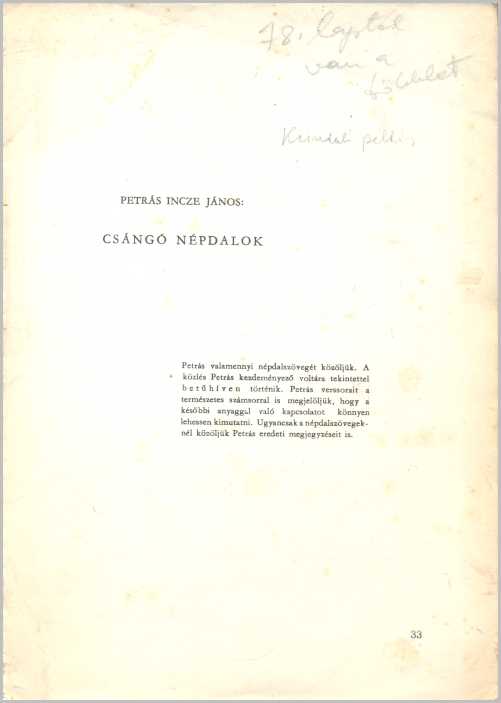 Petrás Incze János: Csángó népdalok (Moldvahoni Csángó-Magyar Dallok)