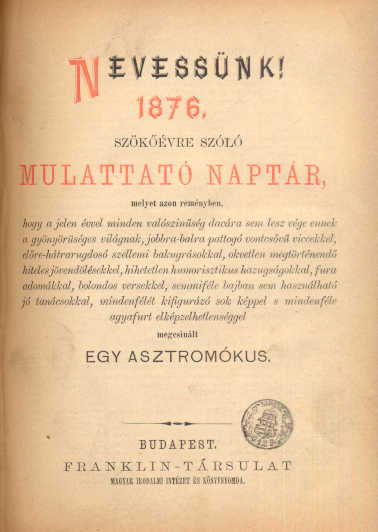 Nevessünk! Új humorisztikus naptár a magyar nép számára 1870 évre. Első évfolyam.