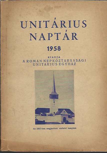 Unitárius naptár 1958 (kiadja a Román Népköztársasági Unitárius Egyház)