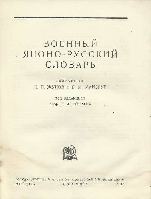 Japán-orosz katonai szótár (1935) / Военный японо русский словарь