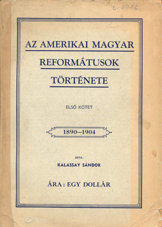 Kalassay Sándor: Az amerikai magyar reformátusok története. Első kötet (1890–1904). [Unicus
