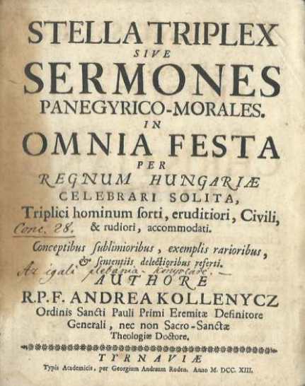 Stella triplex, sive sermones panegyrico-morales. In omnia festa per regnum Hungariae ...
