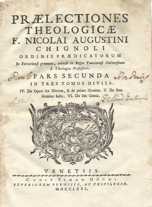 Praelectiones theologicae f. Nicolai Augustini Chignoli Ordinis Praedicatorum (1-2 volume)