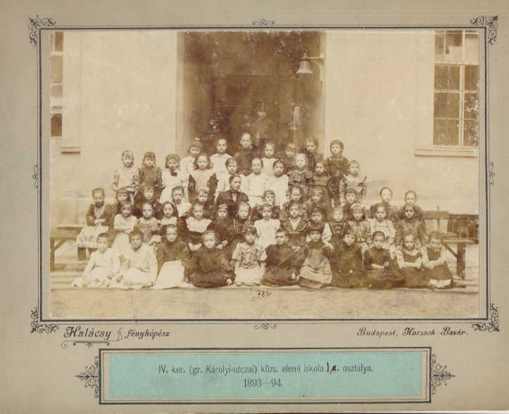 fotó - IV. ker. (gr Károlyi-utczai) közs. elemi iskola I. osztálya 1893-94. Halácsy fényképész, Bp, Harisch-Bazár