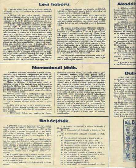 Háború előtti társasjátékok. Rajzos lapok (táblák) és játékszabály leírások.