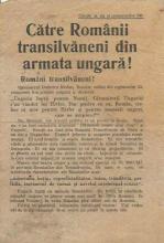 II. világháborús röplap: Către Românii transilvăneni din armata ungară ! Români transilvăneni ! (A magyar hadseregben szolgáló erdélyi románokhoz!)
