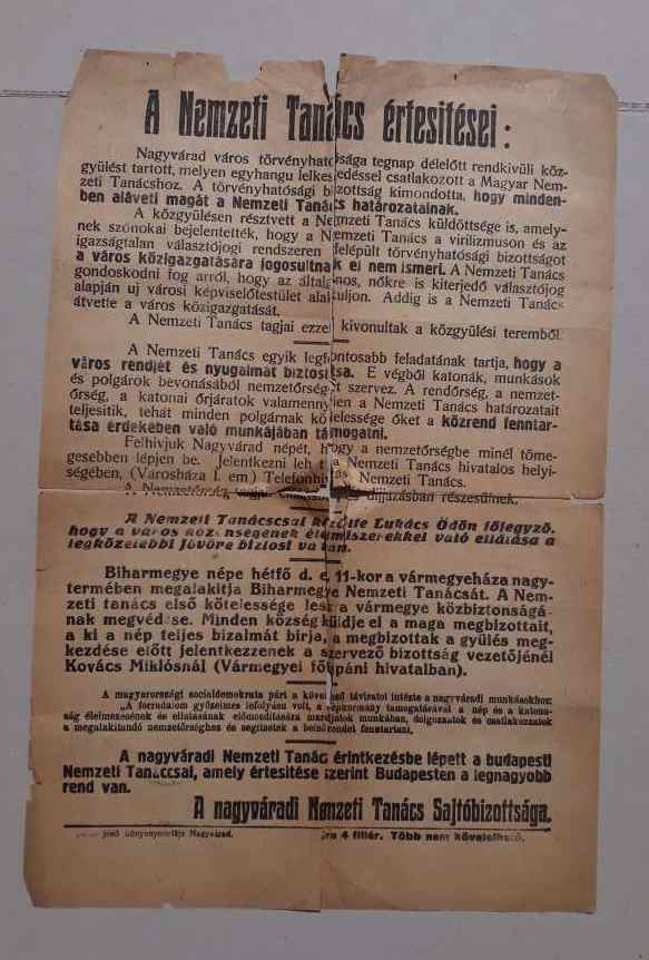 A Nemzeti Tanács értesítései: Nagyvárad város törvényhatósága rendkívüli közgyűlést tartott...